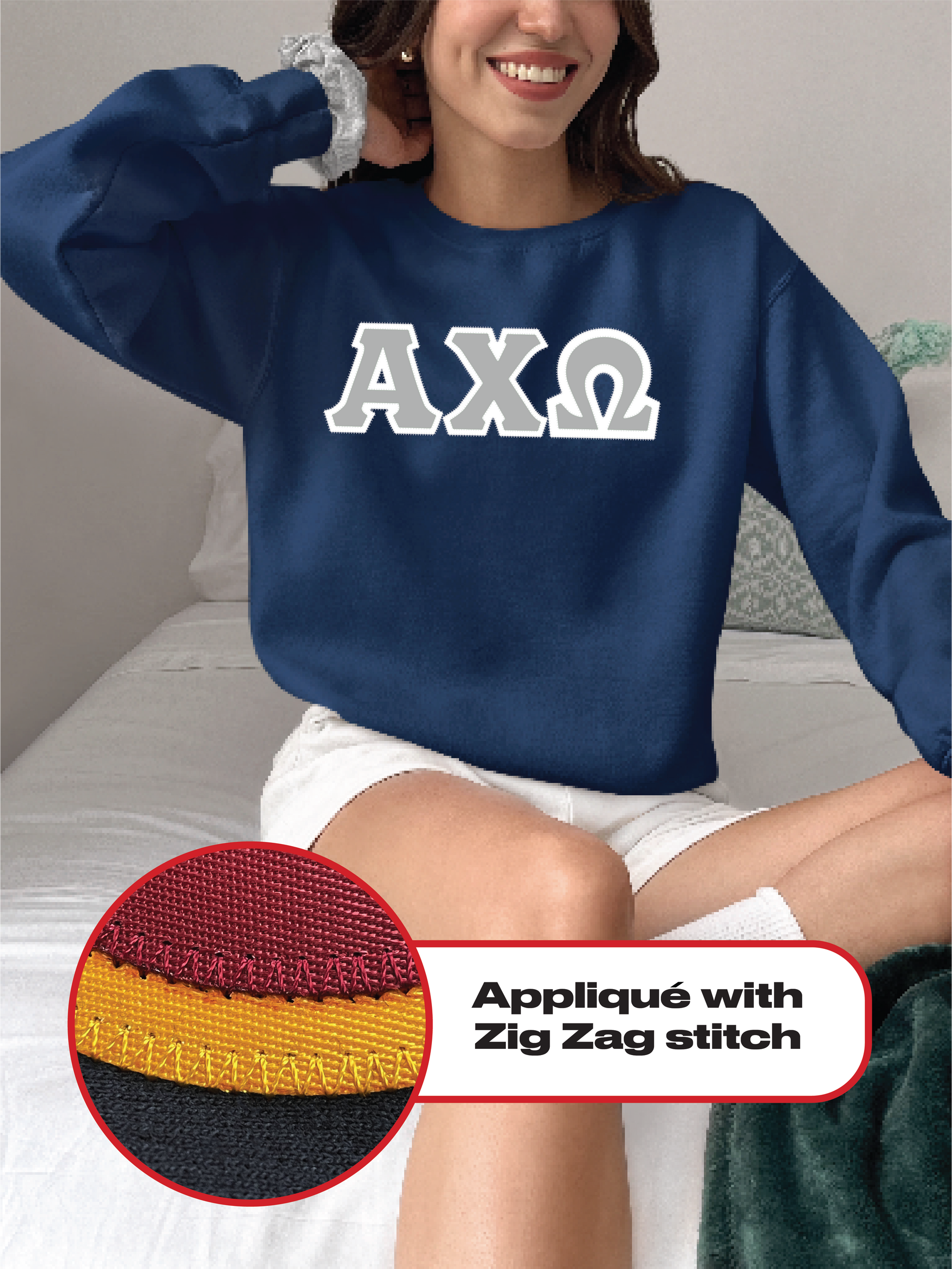 Alpha Chi Omega crewneck sweatshirt letters // Alpha Chi Omega zig-zag embroidered crewneck letters