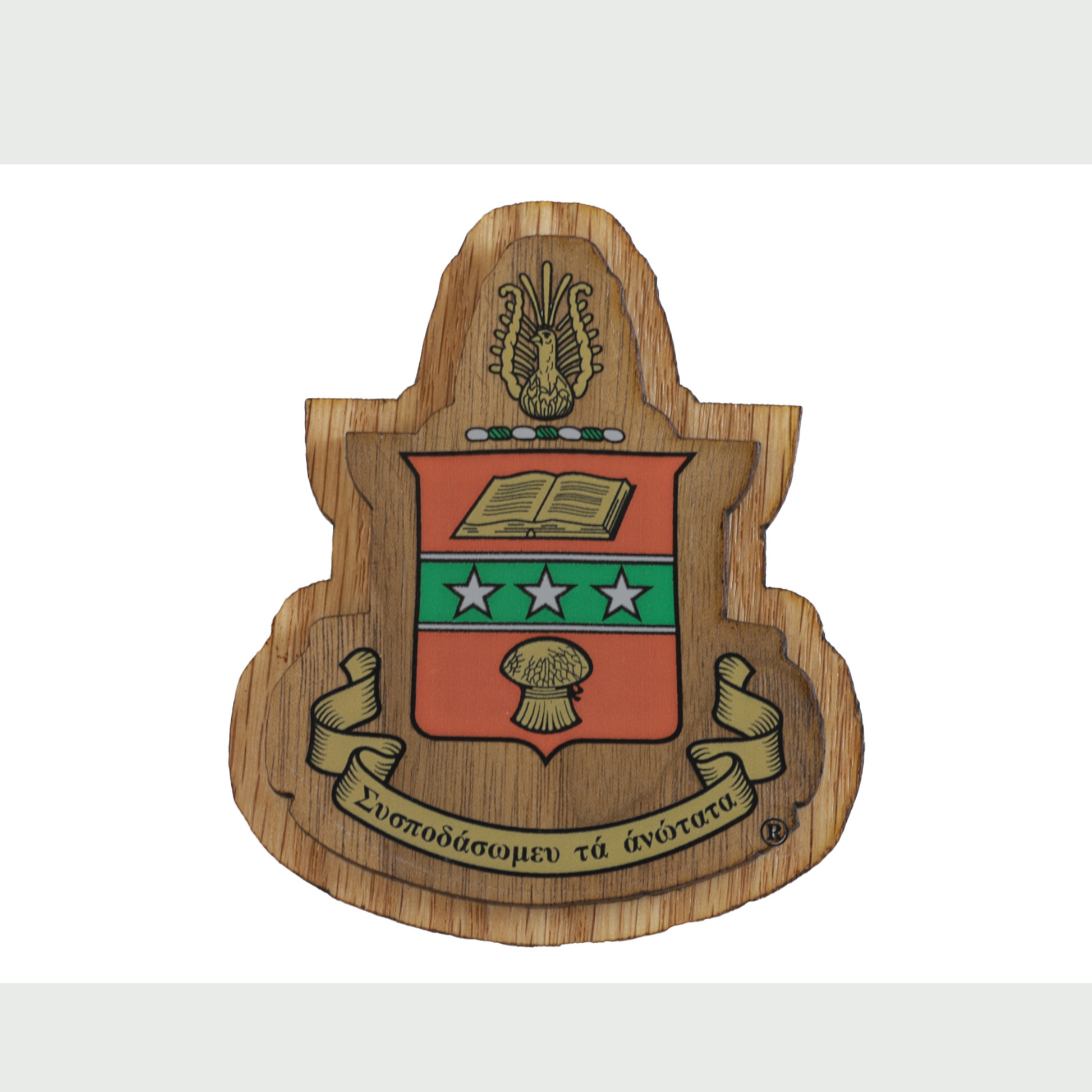 Organization raised wood crest with 3m tape adhesive backing for easy application to any paddles, doors or boxes. Holds just as good as glue when applied to a clean smooth surface.