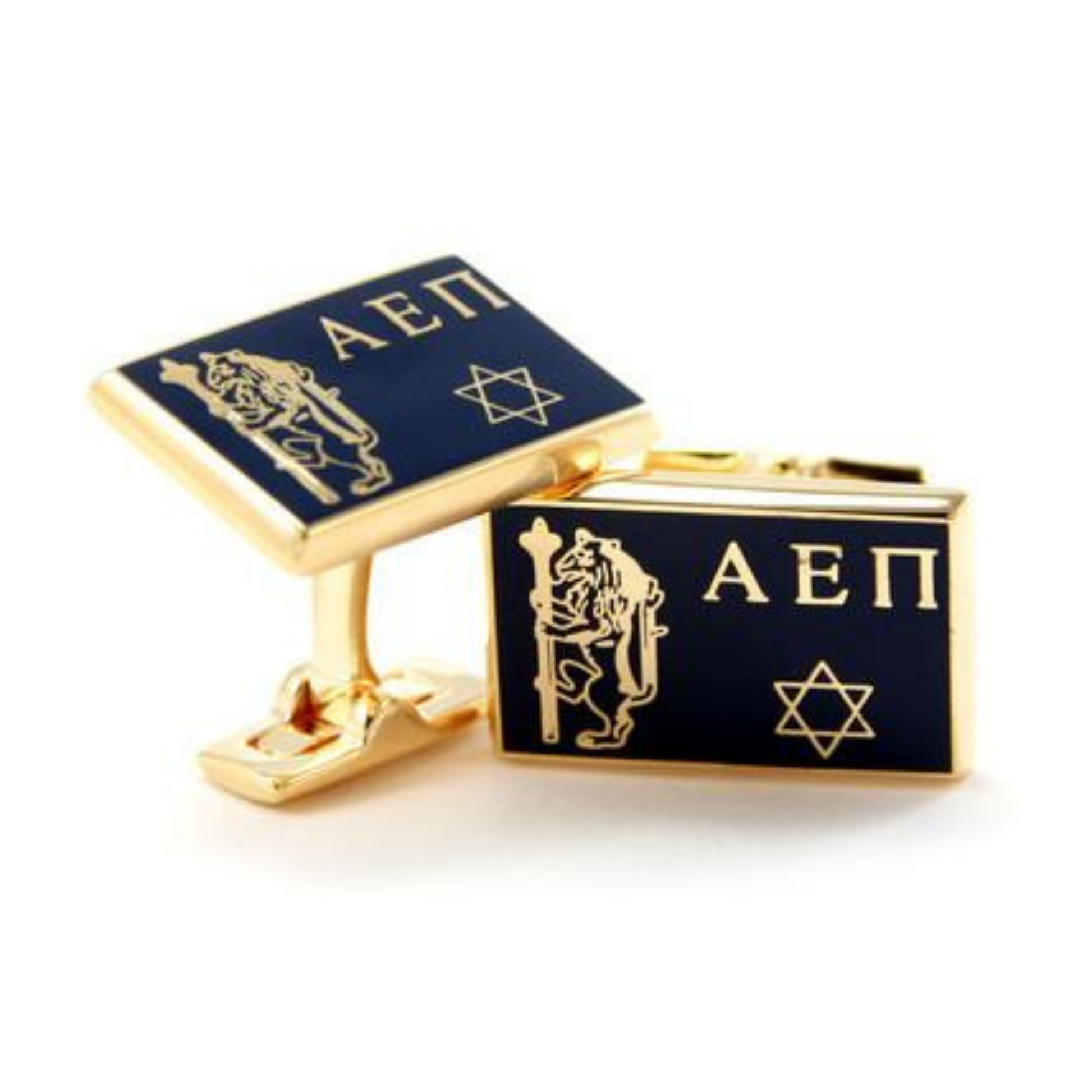 A Pair of Rhodium coated and brilliantly polished Alpha Epsilon Pi Flag Cuff link.