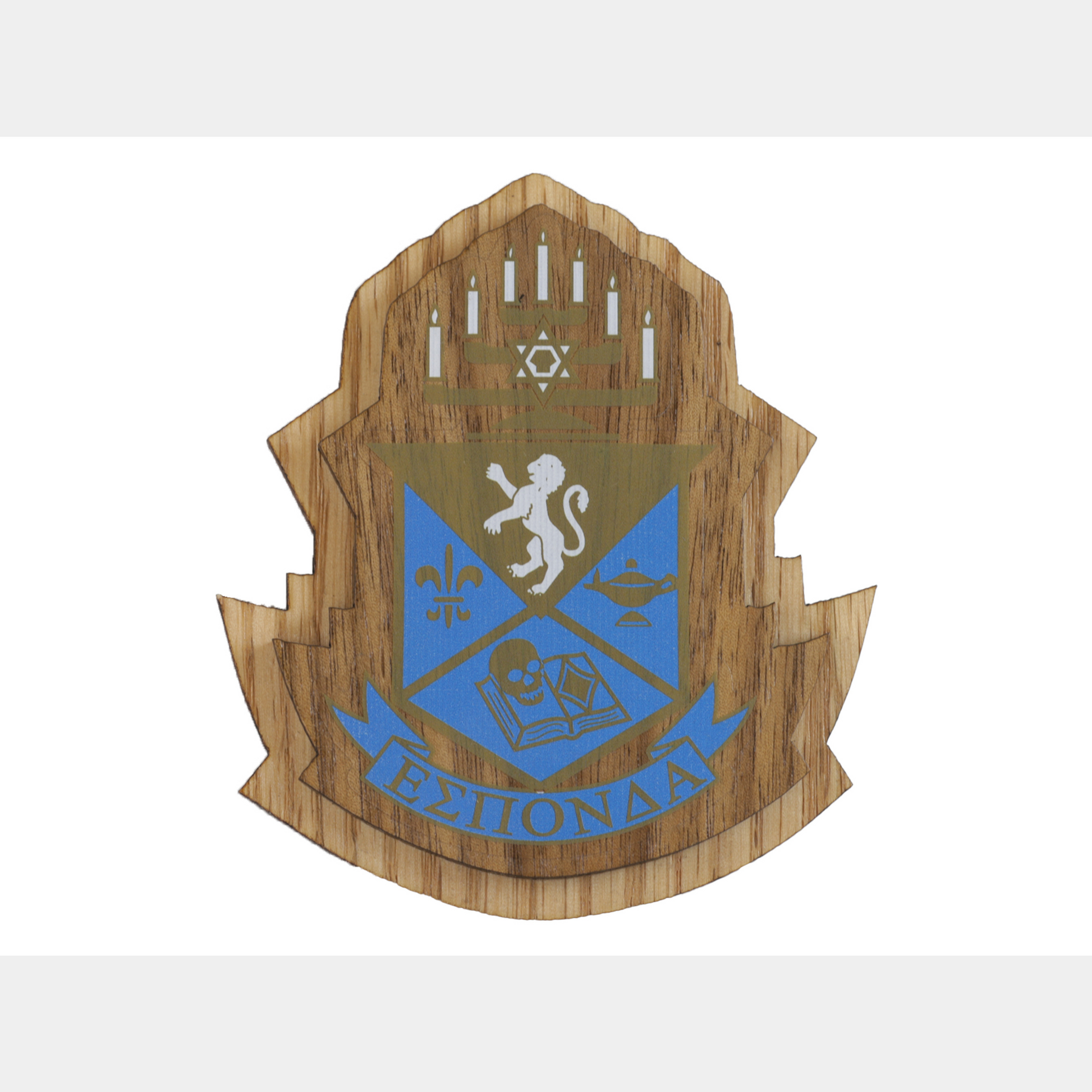 Organization raised wood crest with 3m tape adhesive backing for easy application to any paddles, doors or boxes. Holds just as good as glue when applied to a clean smooth surface.
