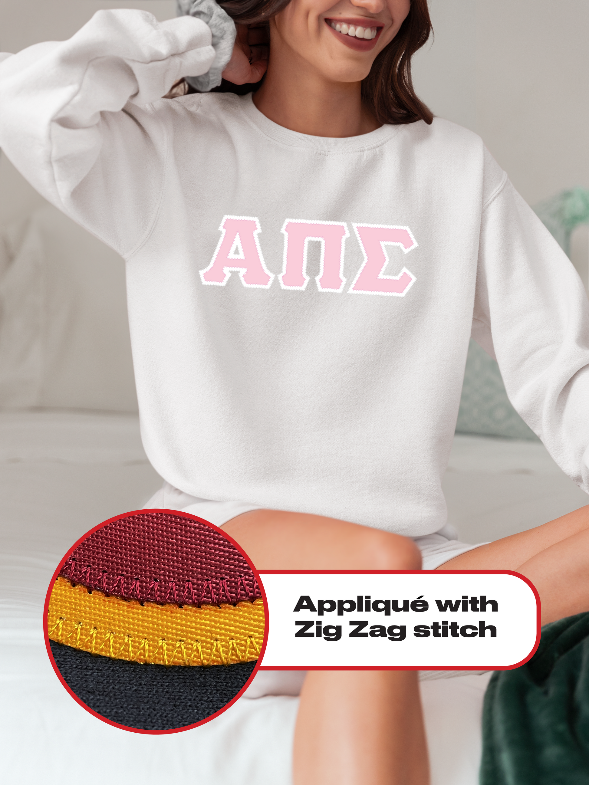 Alpha Pi Sigma crewneck sweatshirt letters // Alpha Pi Sigma zig-zag embroidered crewneck letters