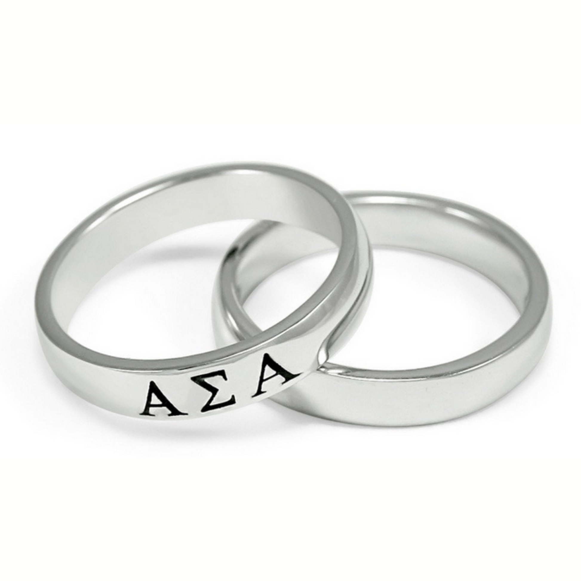 Alpha Sigma Alpha women sterling silver ring with Greek letters finished in black enamel. Coated with rhodium for a smooth and lasting shine.