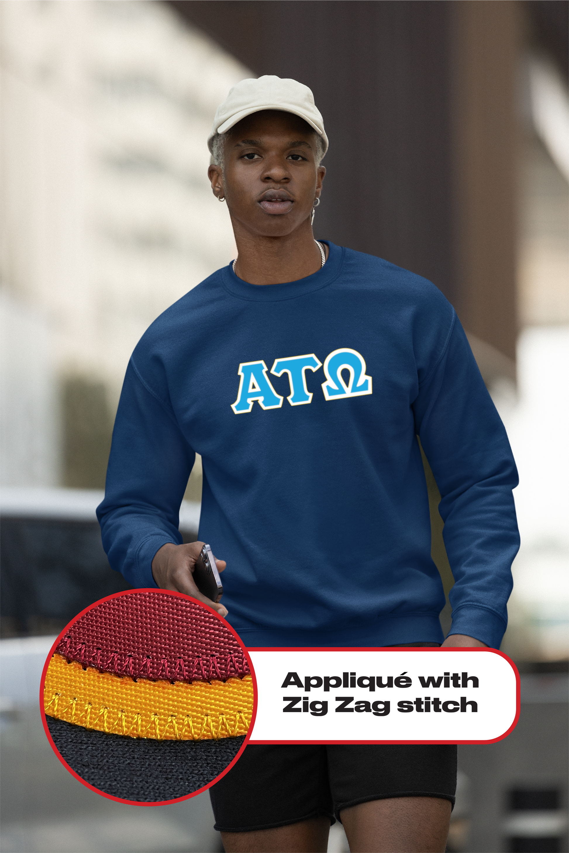 Alpha Tau Omega crewneck sweatshirt letters // Alpha Tau Omega zig-zag embroidered crewneck letters