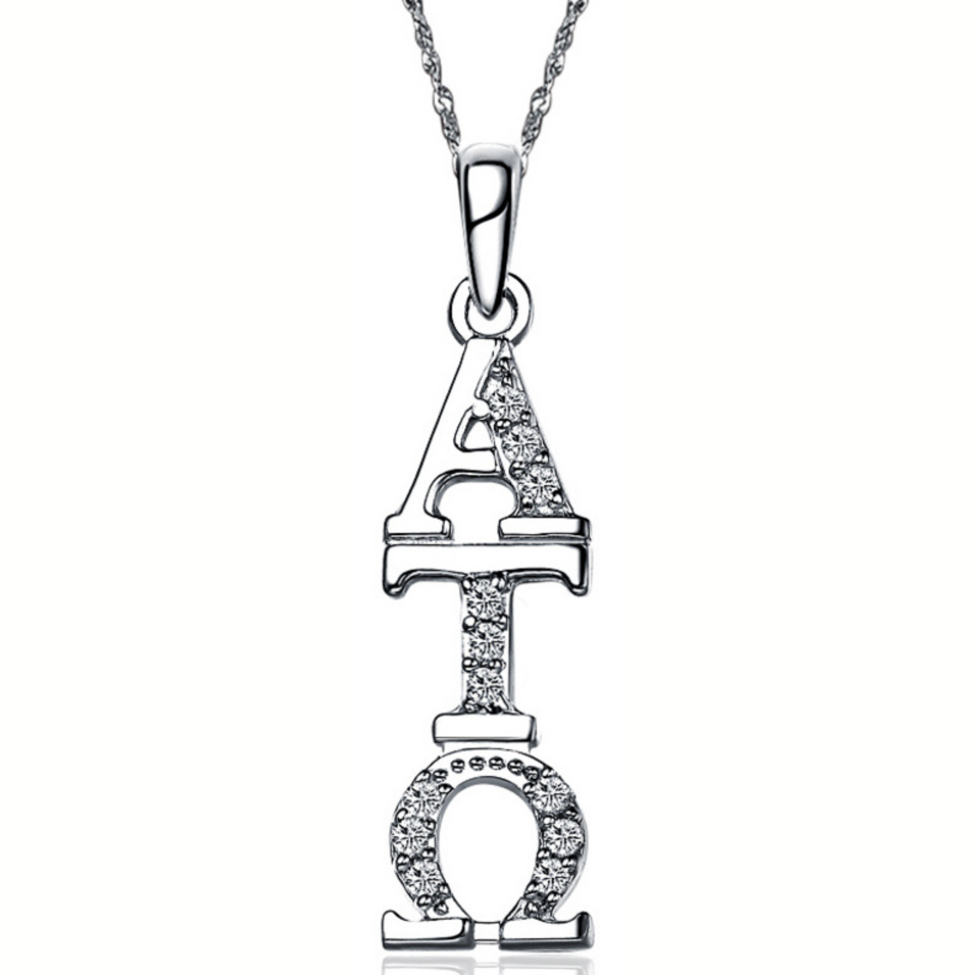 Made out of sterling silver & lab created diamonds. It’s designed and created exclusively by our company, each letter is approximately 1/4″ tall and includes a chain loop, Silver Chain sold separately.