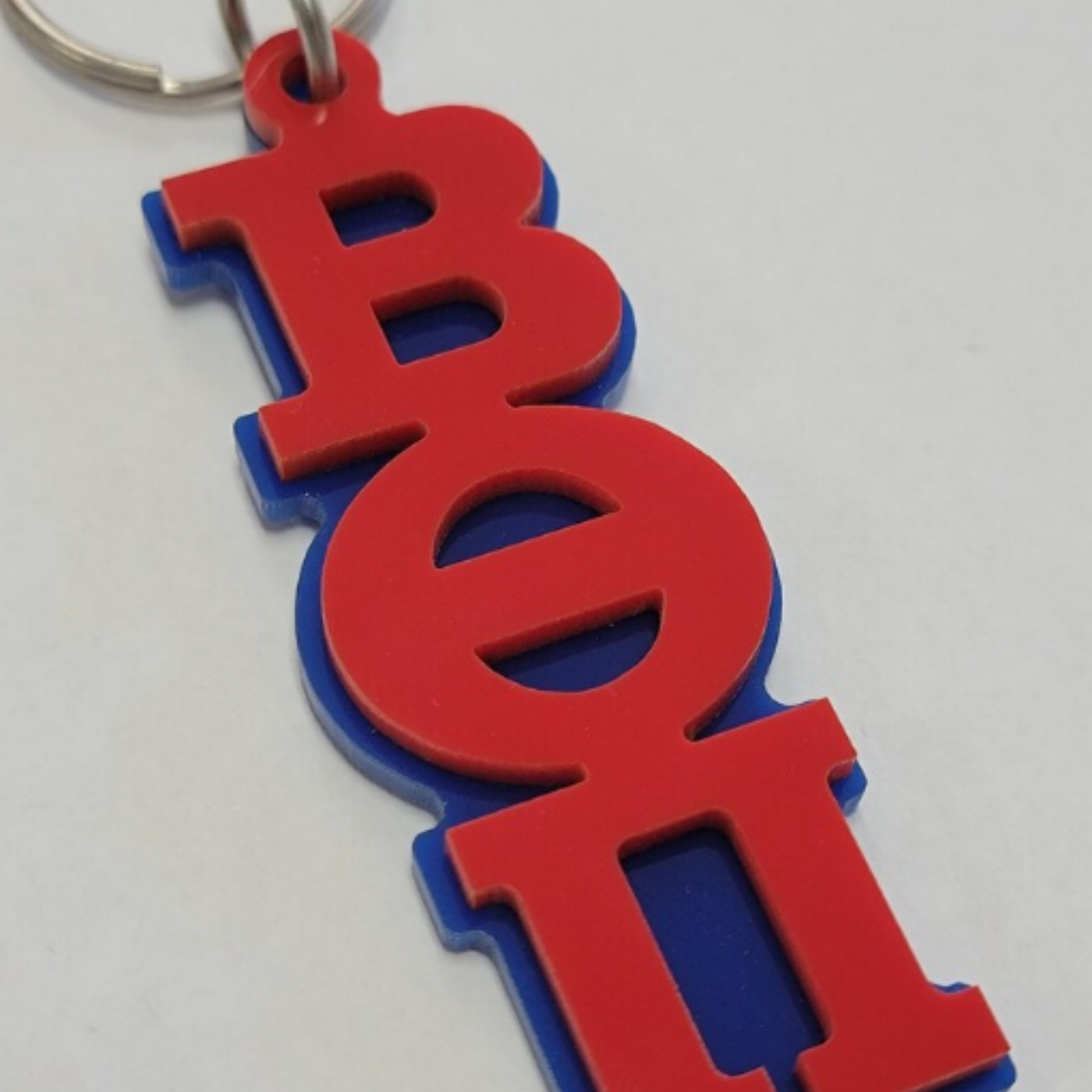 Beta Theta Pi Fraternity Key Chain. Laser cut Greek letters on double layer hard plastic with Fraternity colors in mind.