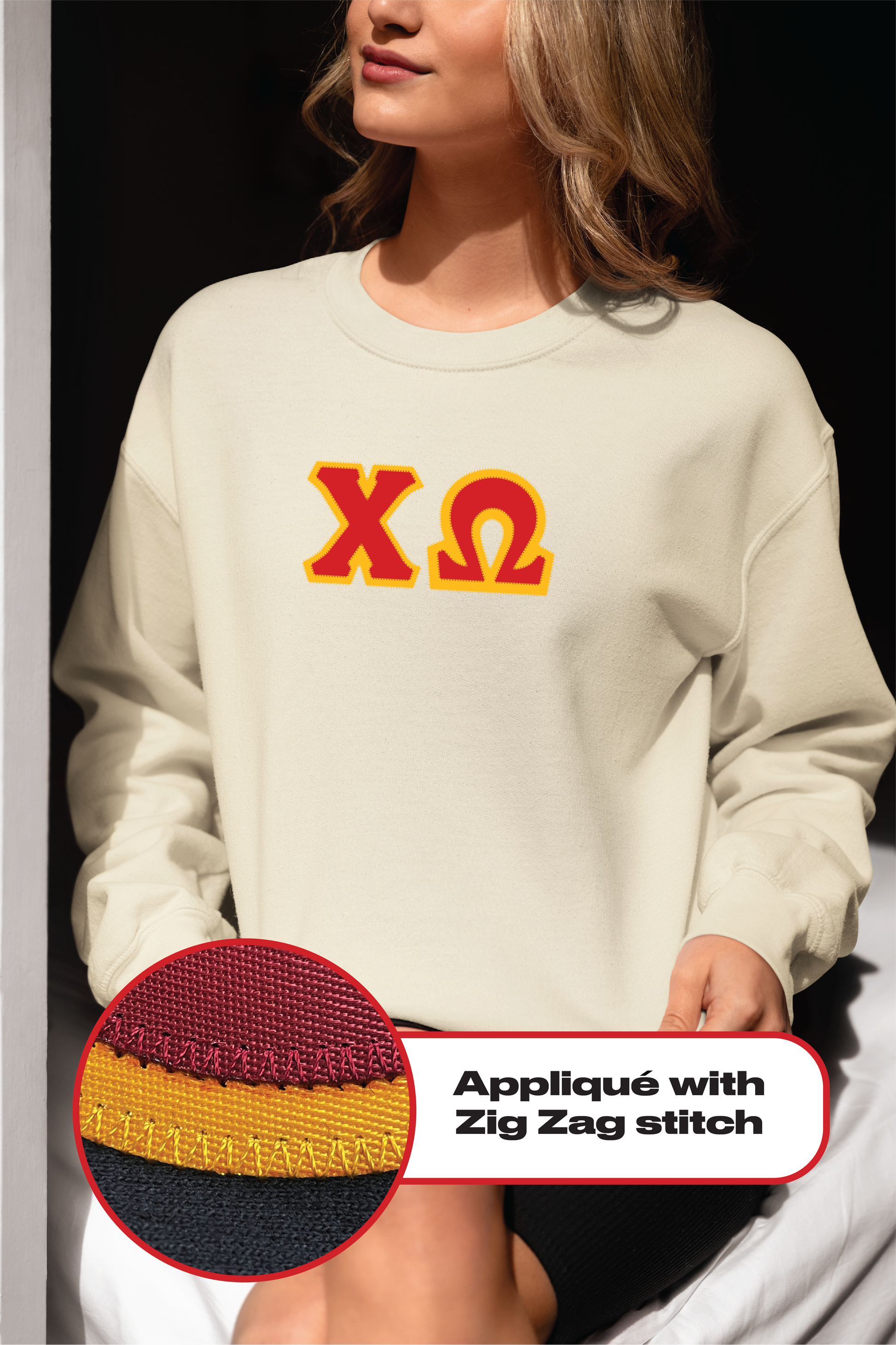Chi Omega crewneck sweatshirt letters // Chi Omega zig-zag embroidered crewneck letters