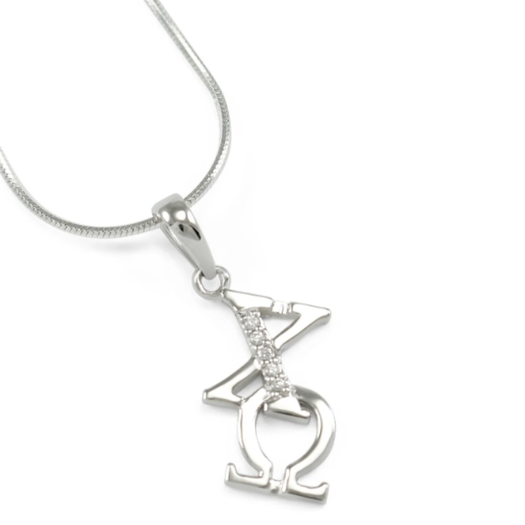 Made out of sterling silver & lab created diamonds. It’s designed and created exclusively by our company, each letter is approximately 1/4″ tall and includes a chain loop, Silver Chain sold separately.