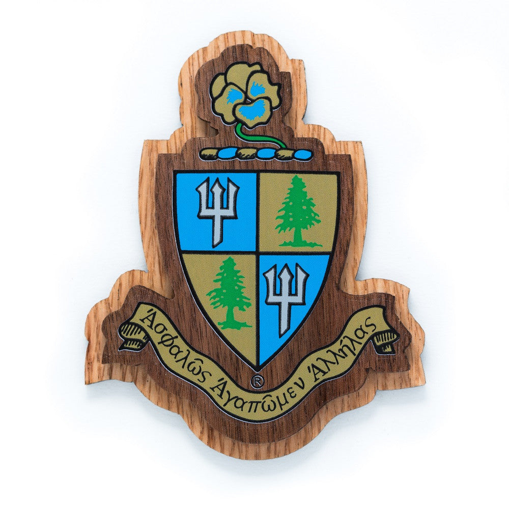 Organization raised wood crest with 3m tape adhesive backing for easy application to any paddles, doors or boxes. Holds just as good as glue when applied to a clean smooth surface.