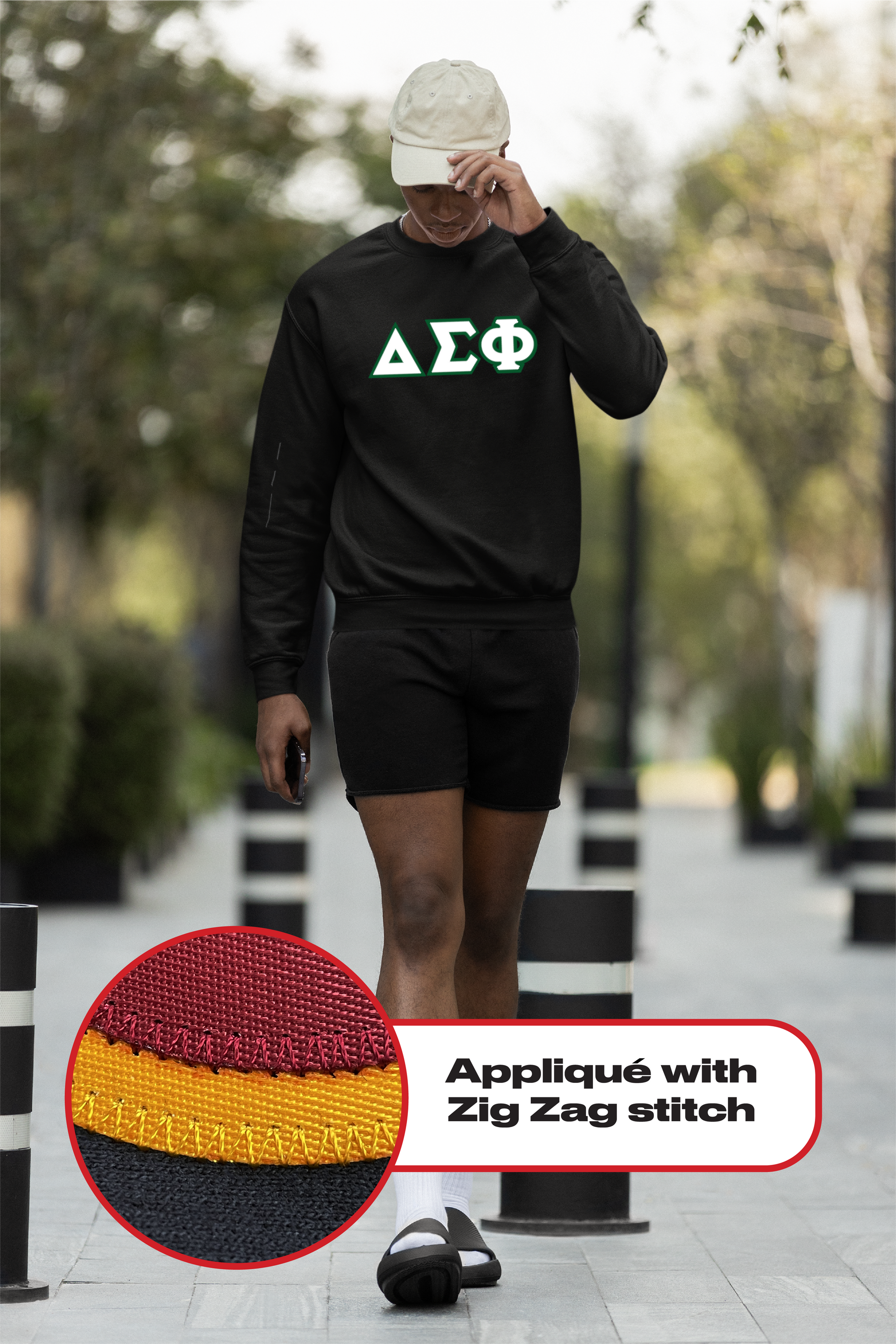 Delta Sigma Phi crewneck sweatshirt letters // Delta Sigma Phi zig-zag embroidered crewneck letters