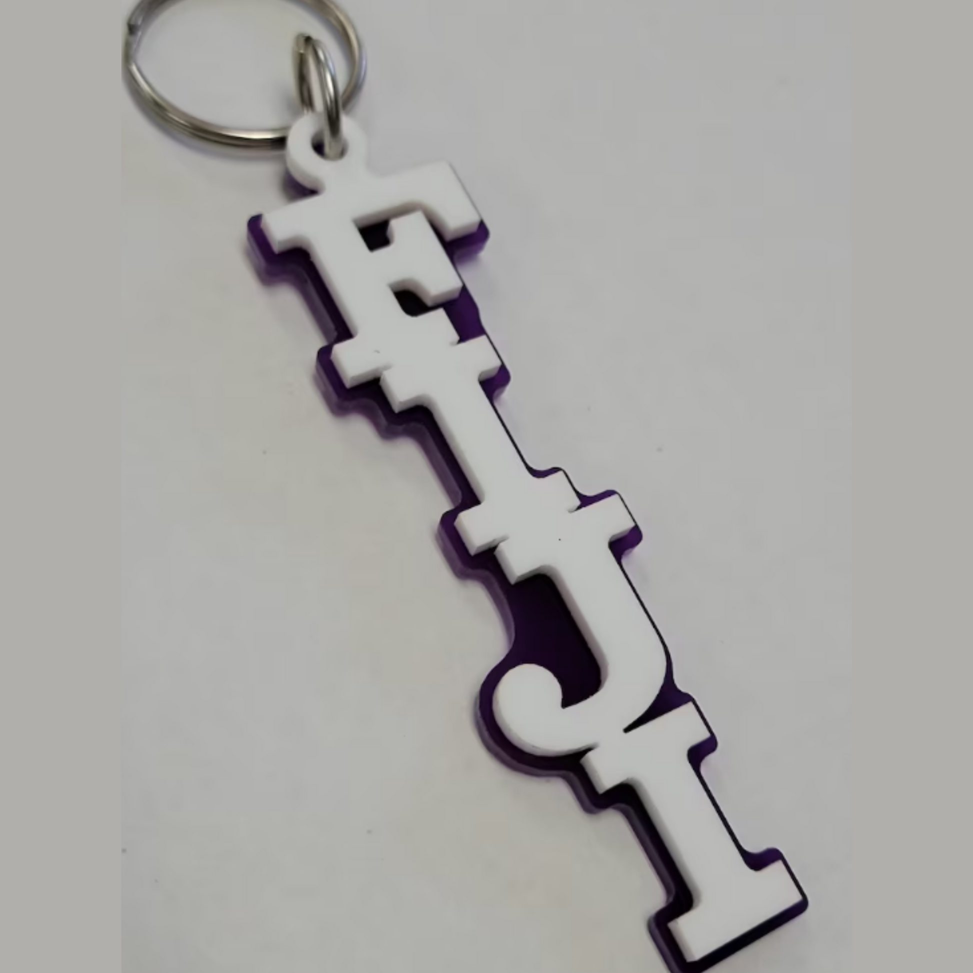 FIJI Fraternity Key Chain. Laser cut Greek letters on double layer hard plastic with Fraternity colors in mind.