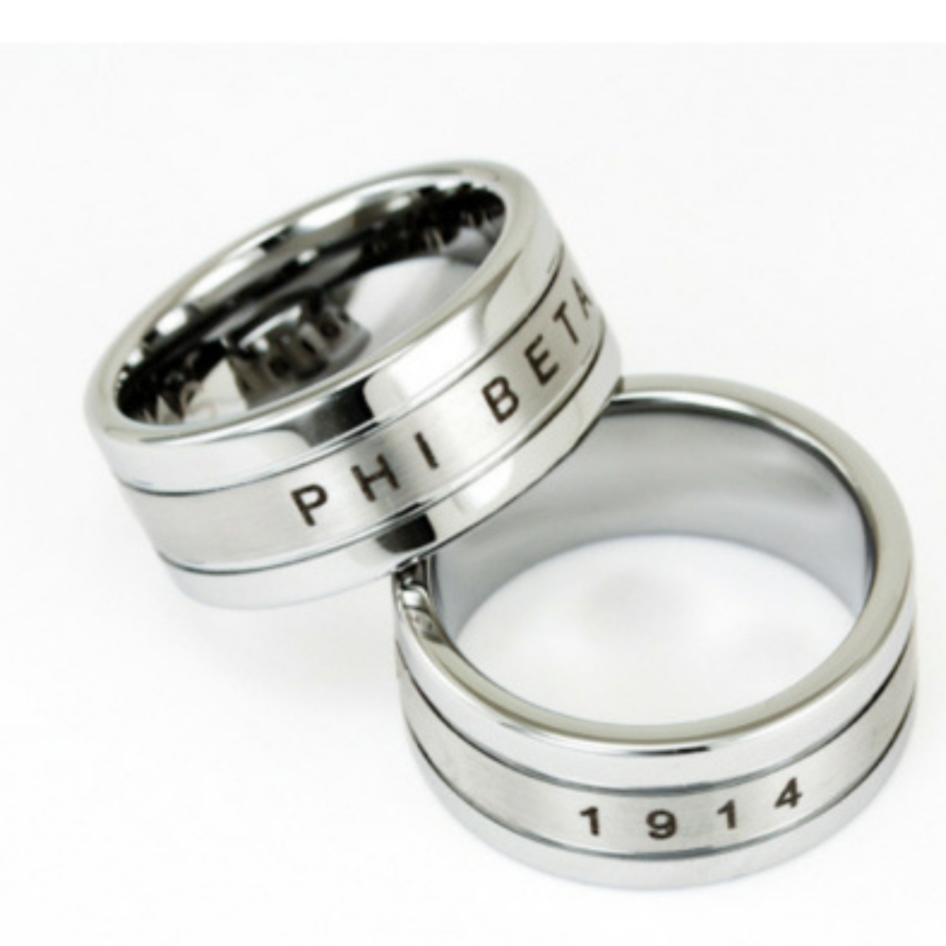 Solid Tungsten construction with a nice brush-finish in the center. Precision laser etched Phi Beta Sigma letters.