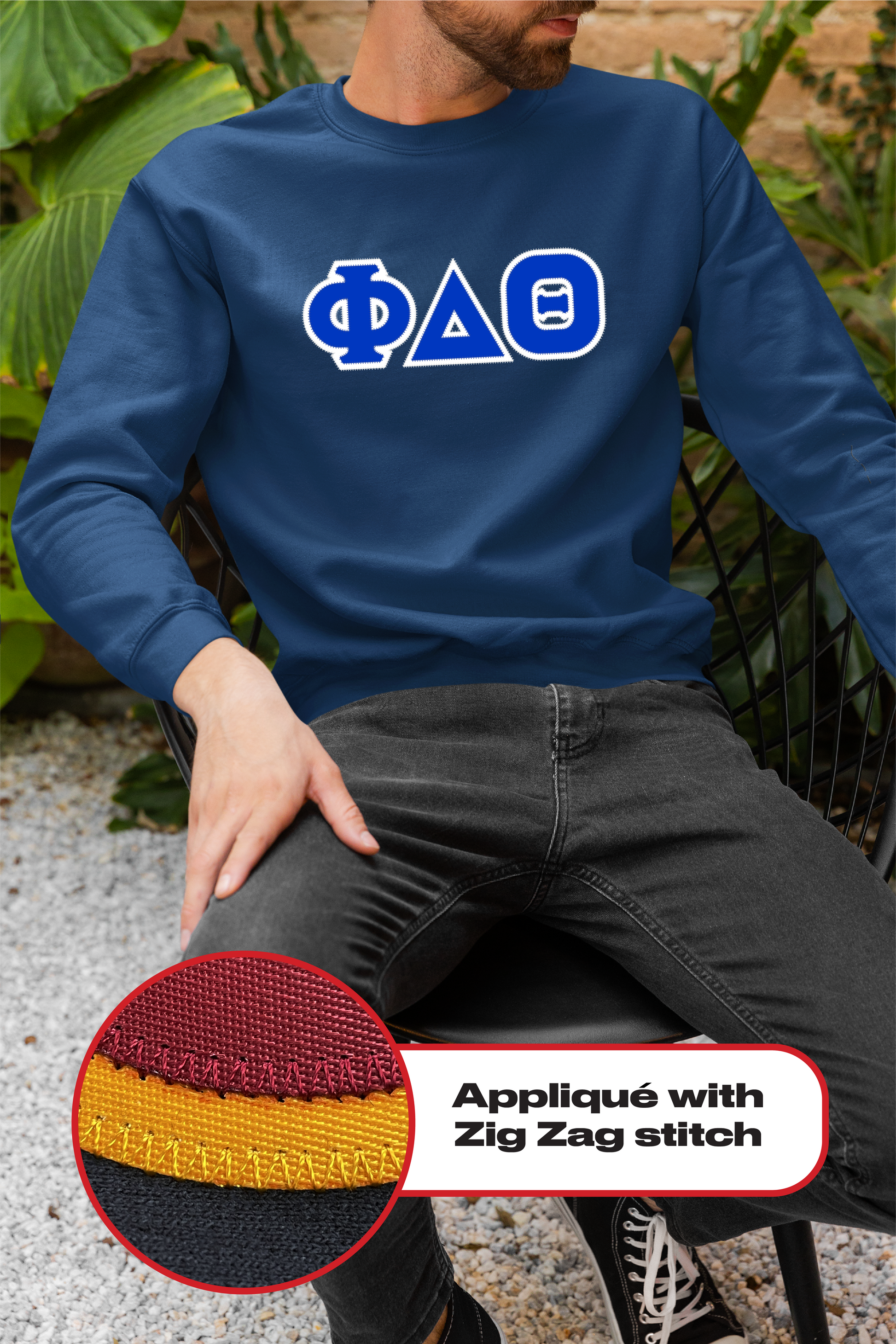 Phi Delta Theta crewneck sweatshirt letters // Phi Delta Theta zig-zag embroidered crewneck letters