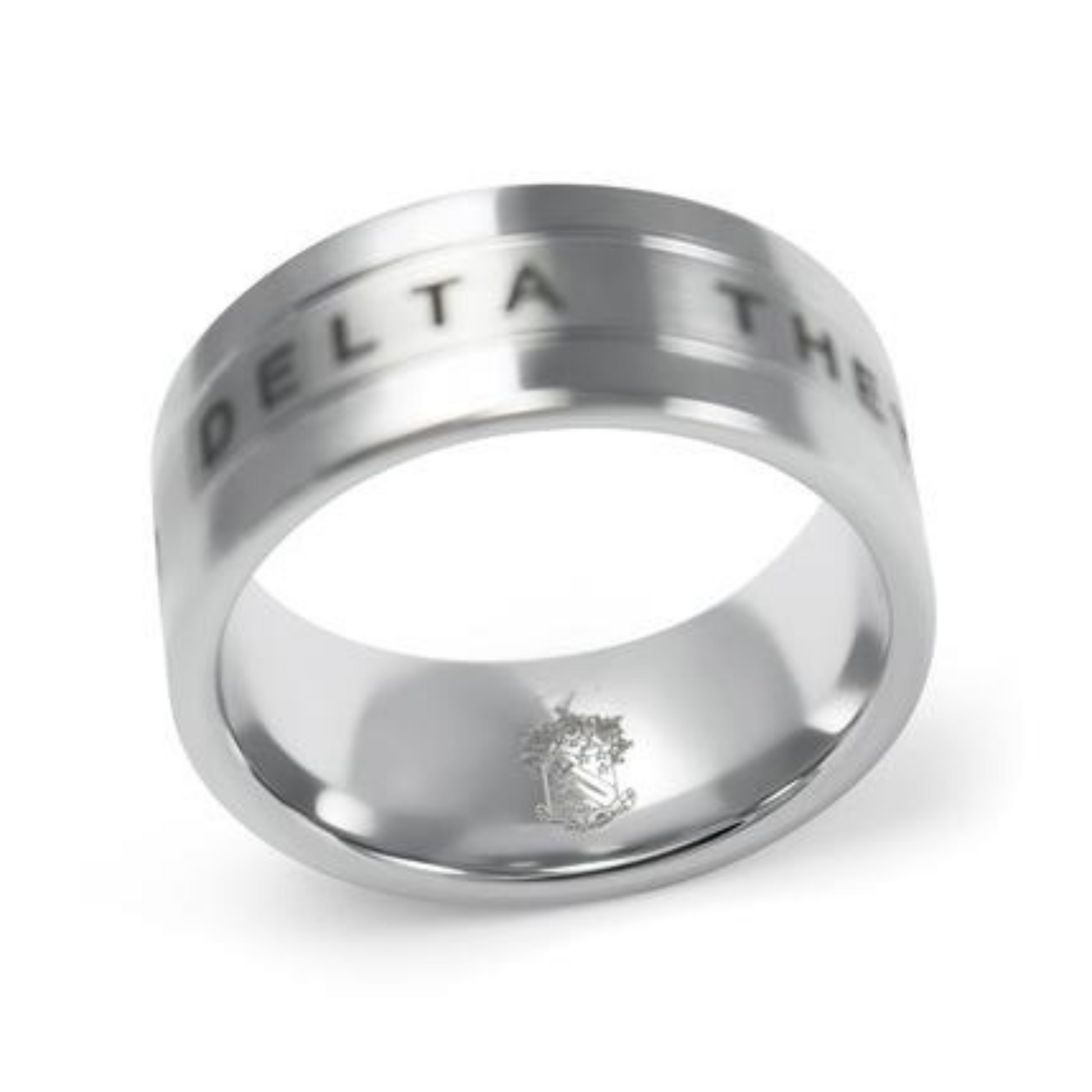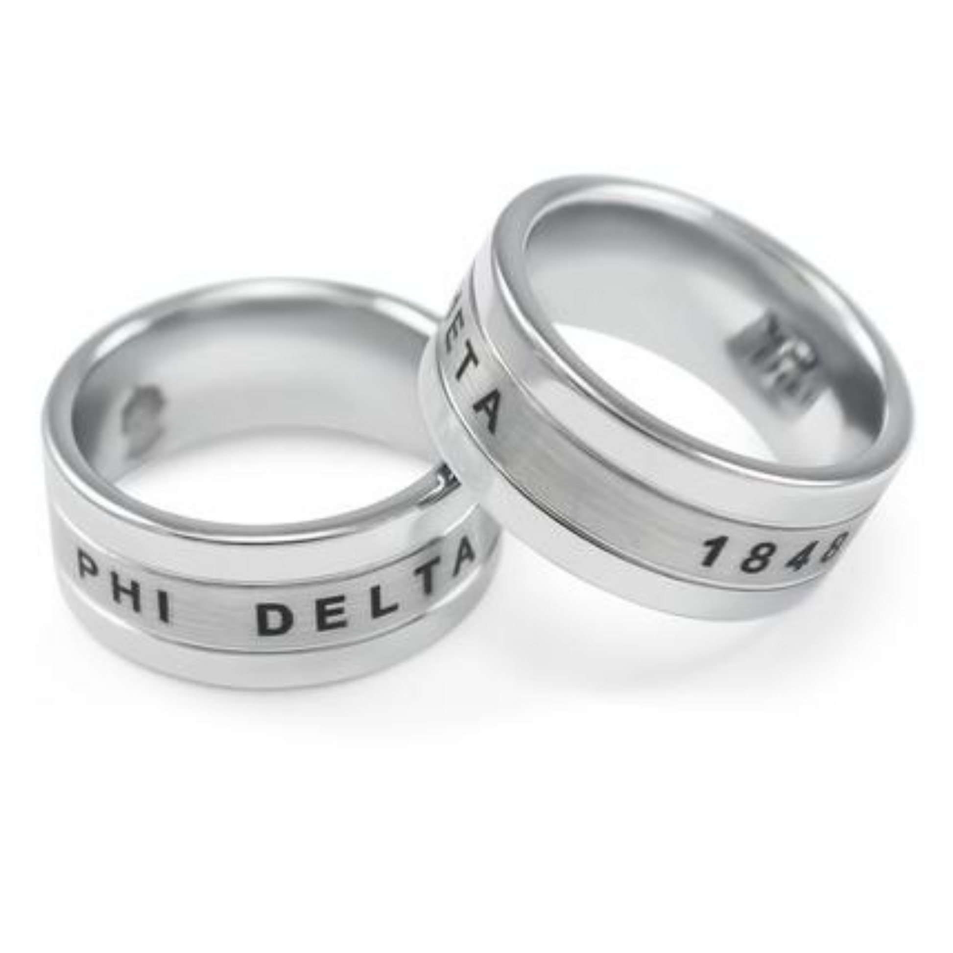 Solid Tungsten construction with a nice brush-finish in the center. Precision laser etched Phi Delta Theta letters.