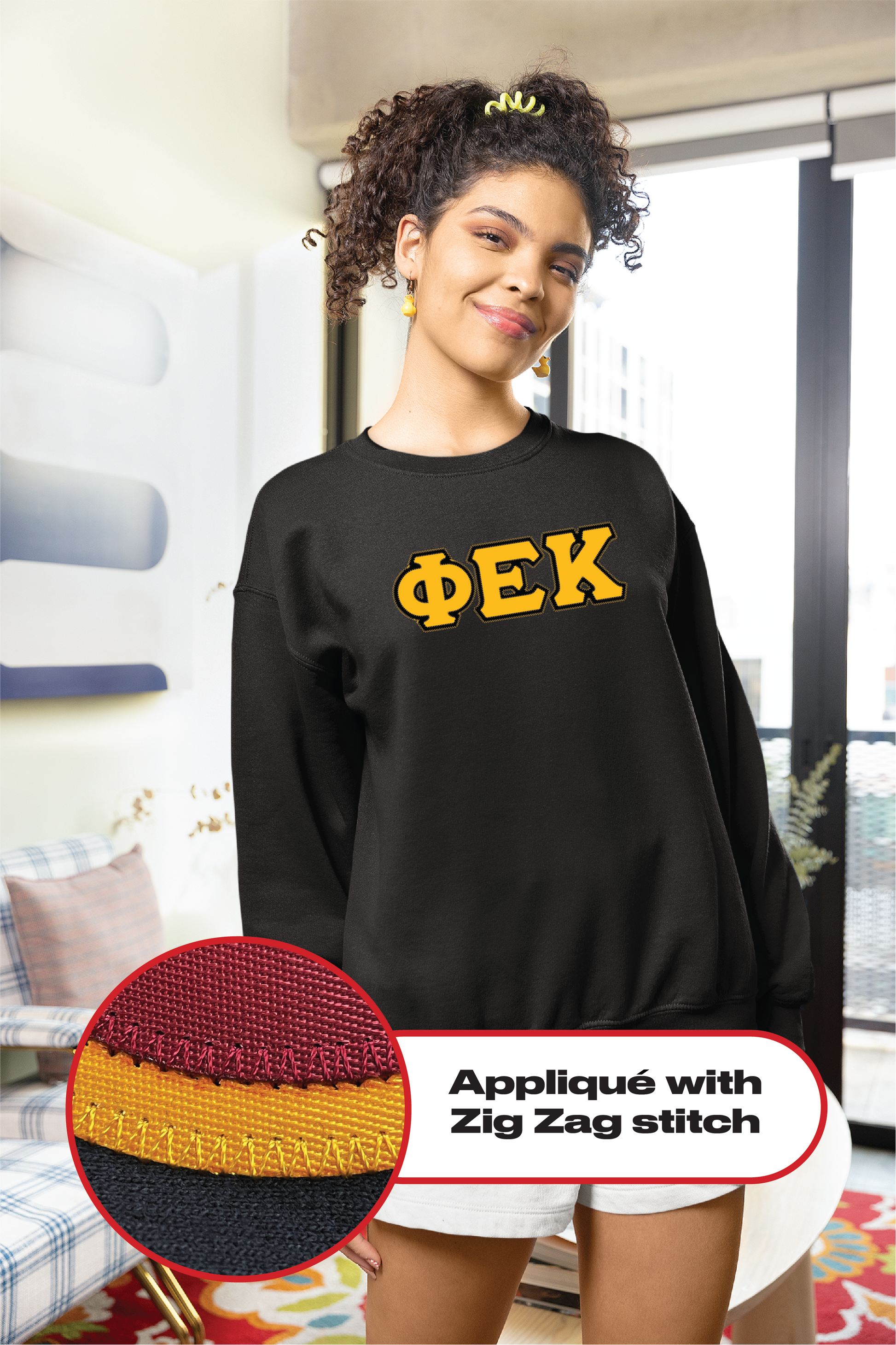 Phi Epsilon Kappa crewneck sweatshirt letters // Phi Epsilon Kappa zig-zag embroidered crewneck letters