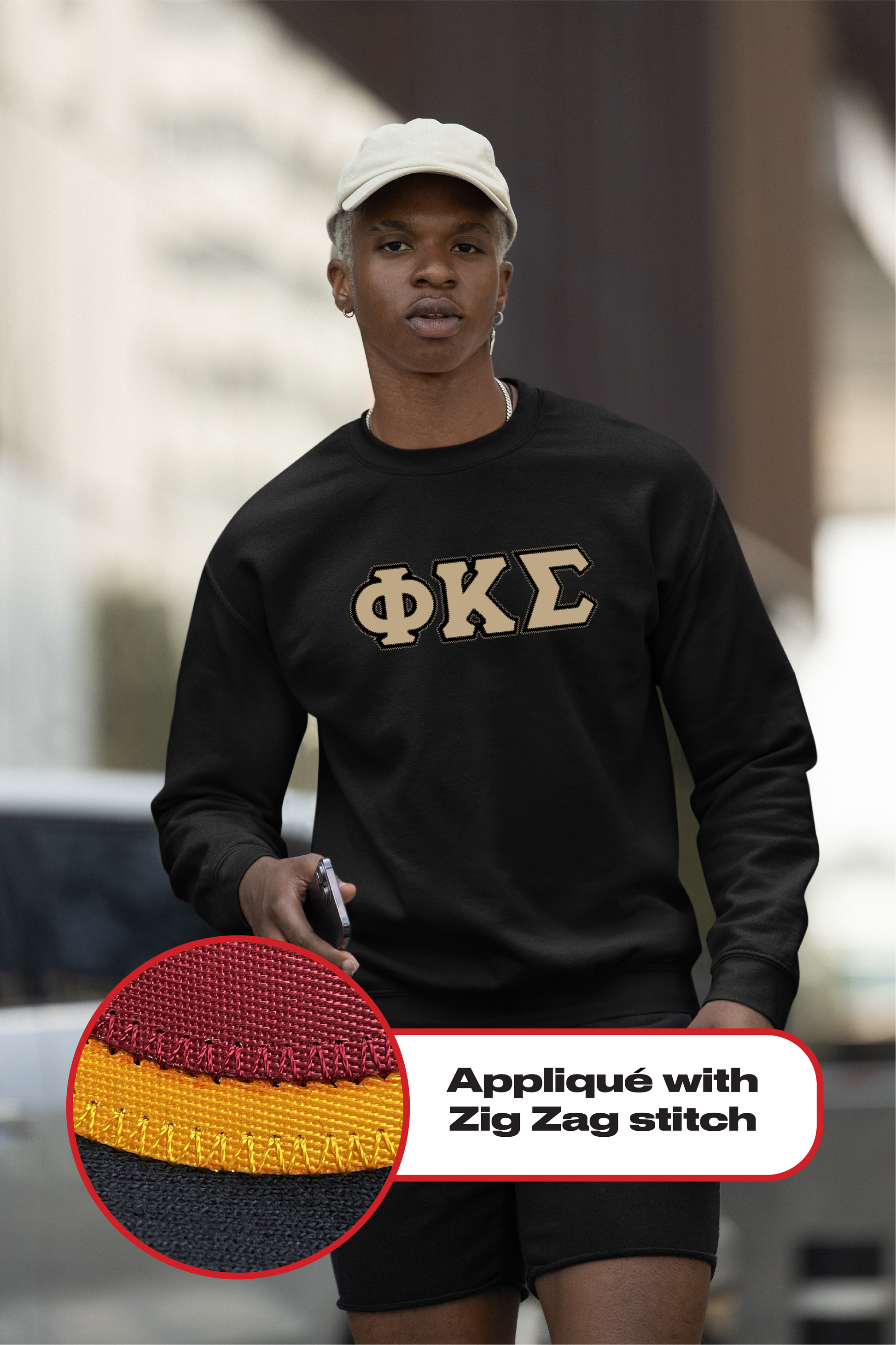 Phi Kappa Sigma crewneck sweatshirt letters // Phi Kappa Sigma zig-zag embroidered crewneck letters