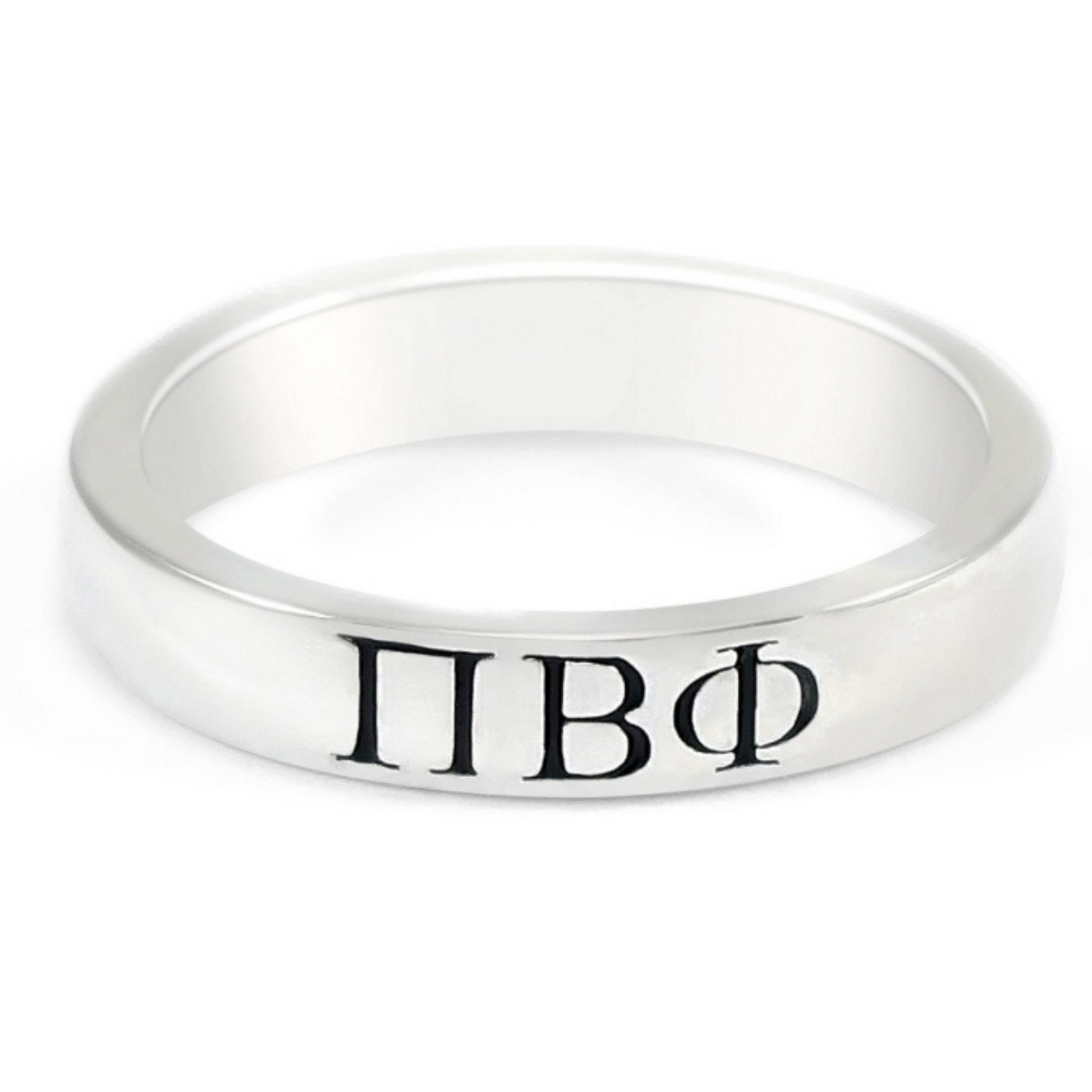 Pi Beta Phi women sterling silver ring with Greek letters finished in black enamel. Coated with rhodium for a smooth and lasting shine.