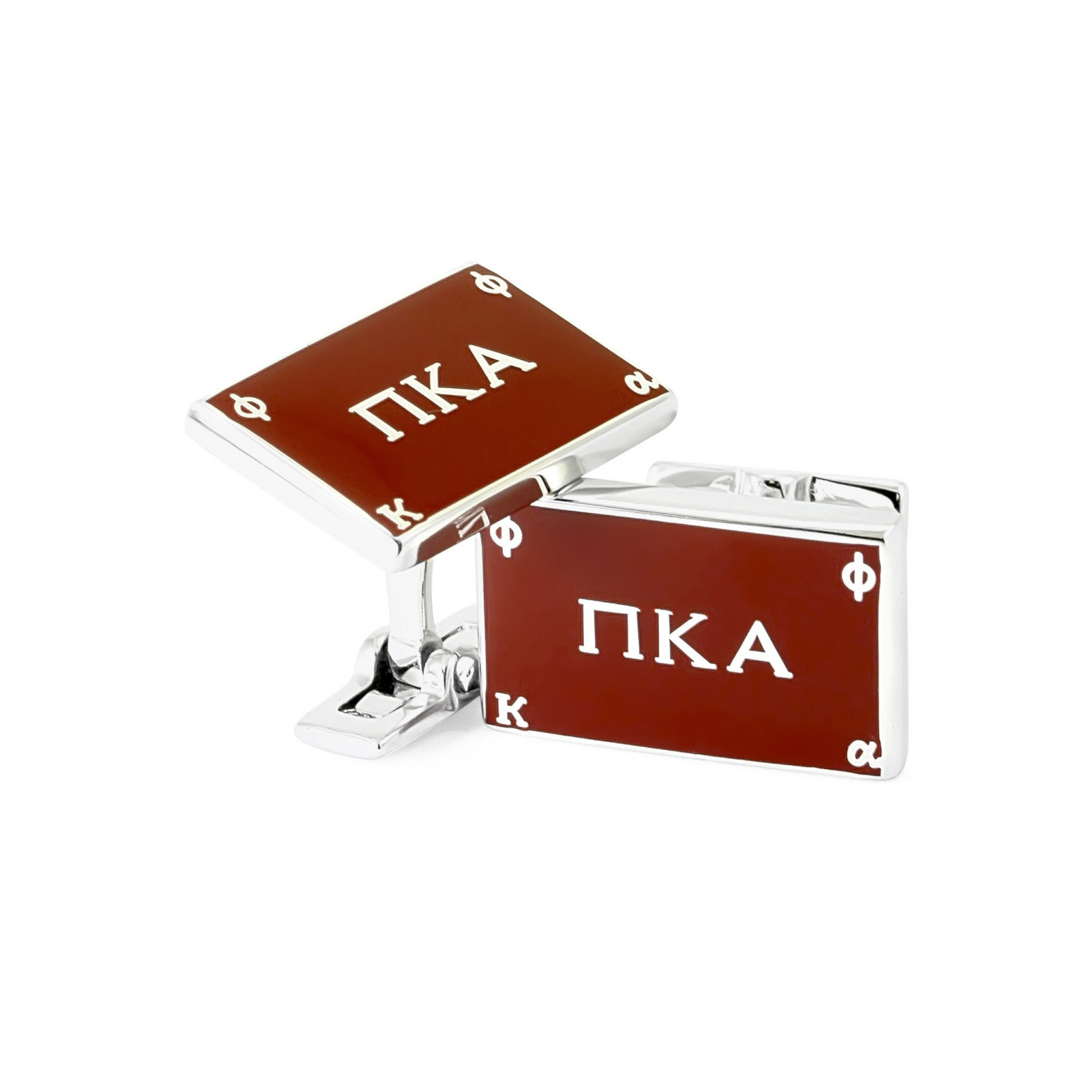 A Pair of Rhodium coated and brilliantly polished Pi Kappa Alpha Cuff link.