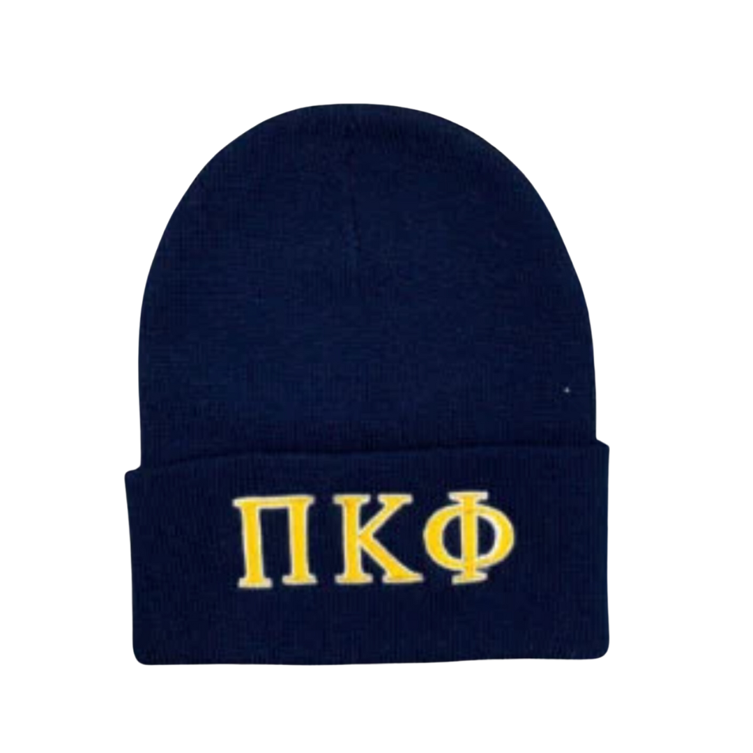 Our Fraternity and Sorority Beanies are crafted from 100% spun acrylic knit, offering a comfortable fit for everyone. Each beanie features embroidered Greek letters with a dual-color border, as shown.
