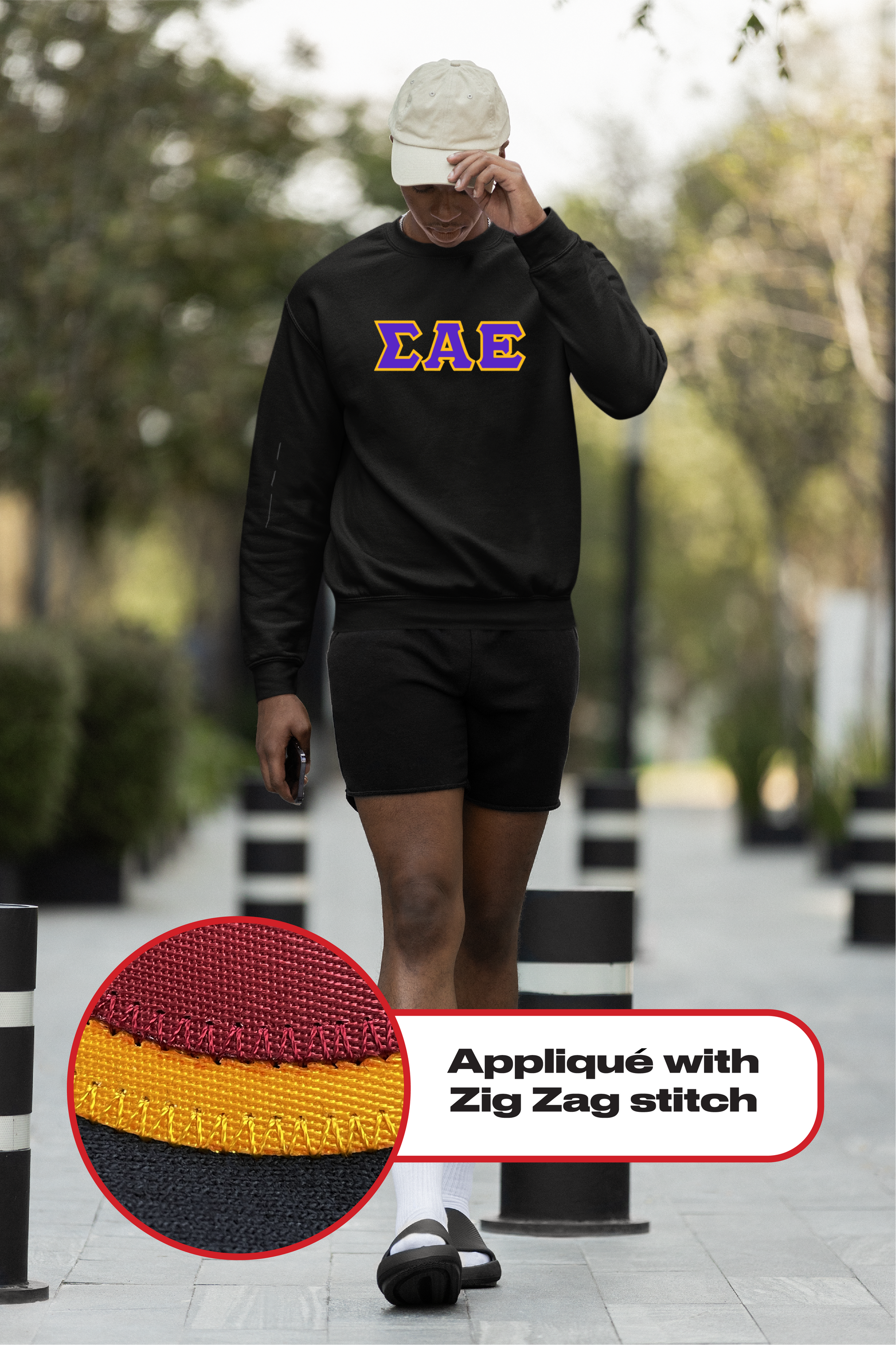 Sigma Alpha Epsilon crewneck sweatshirt letters // Sigma Alpha Epsilon zig-zag embroidered crewneck letters