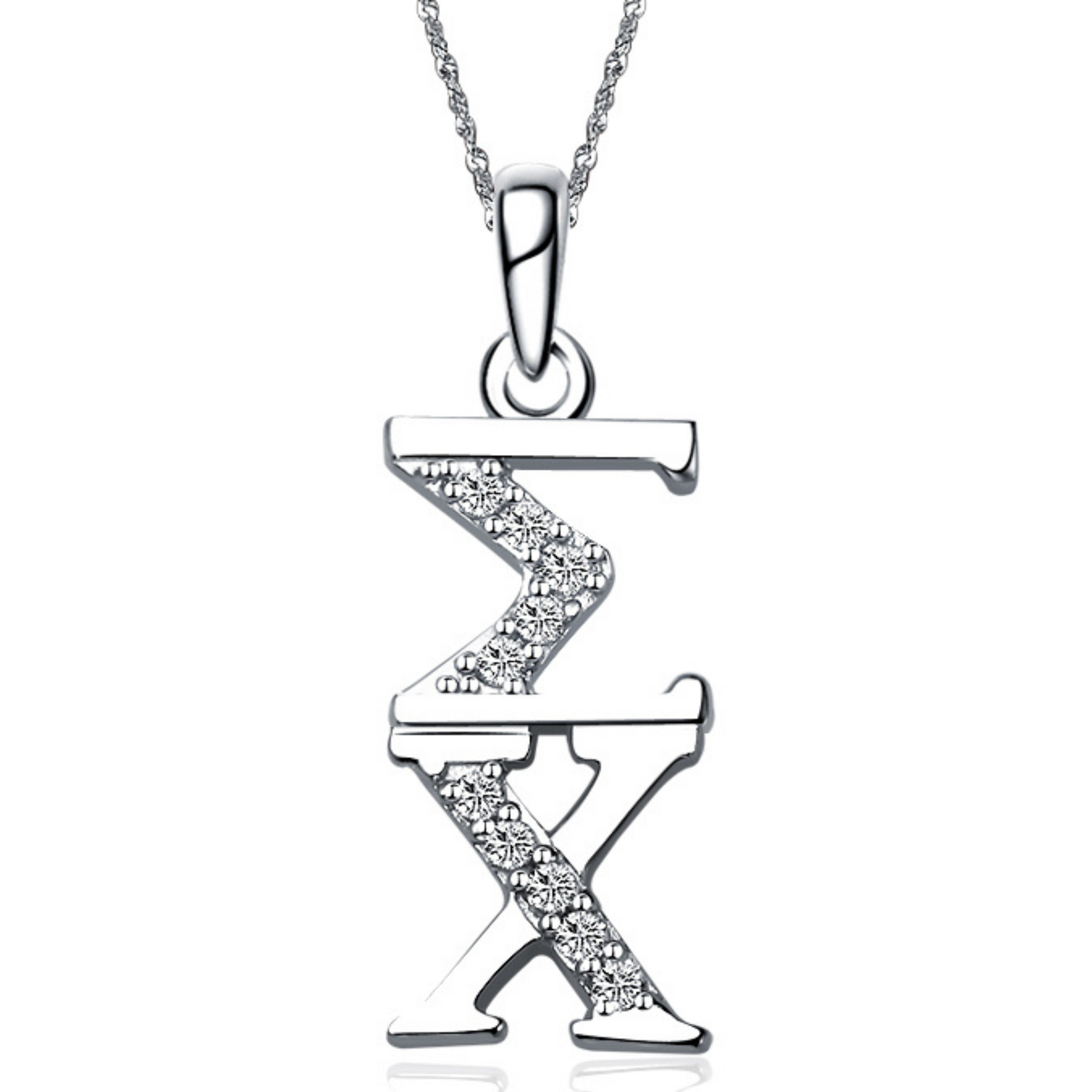 Made out of sterling silver & lab created diamonds. It’s designed and created exclusively by our company, each letter is approximately 1/4″ tall and includes a chain loop, Silver Chain sold separately.