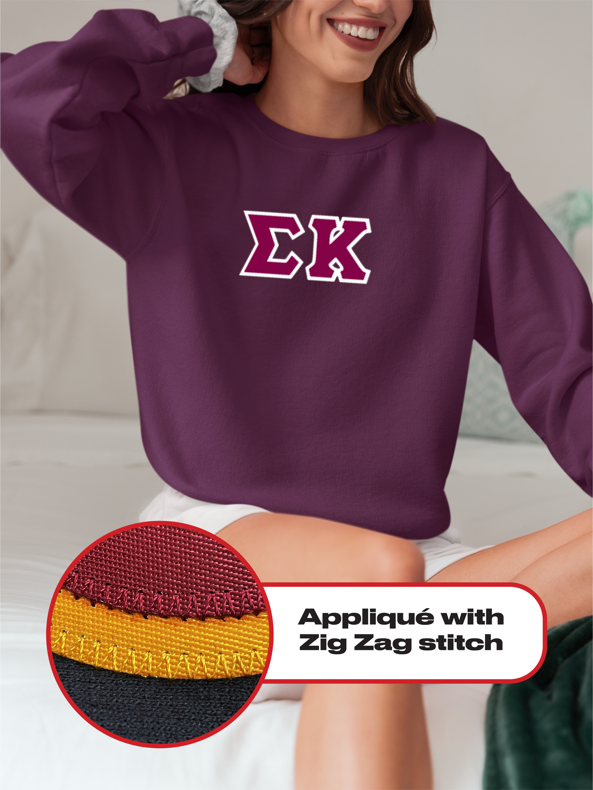 Sigma Kappa crewneck sweatshirt letters // Sigma Kappa zig-zag embroidered crewneck letters