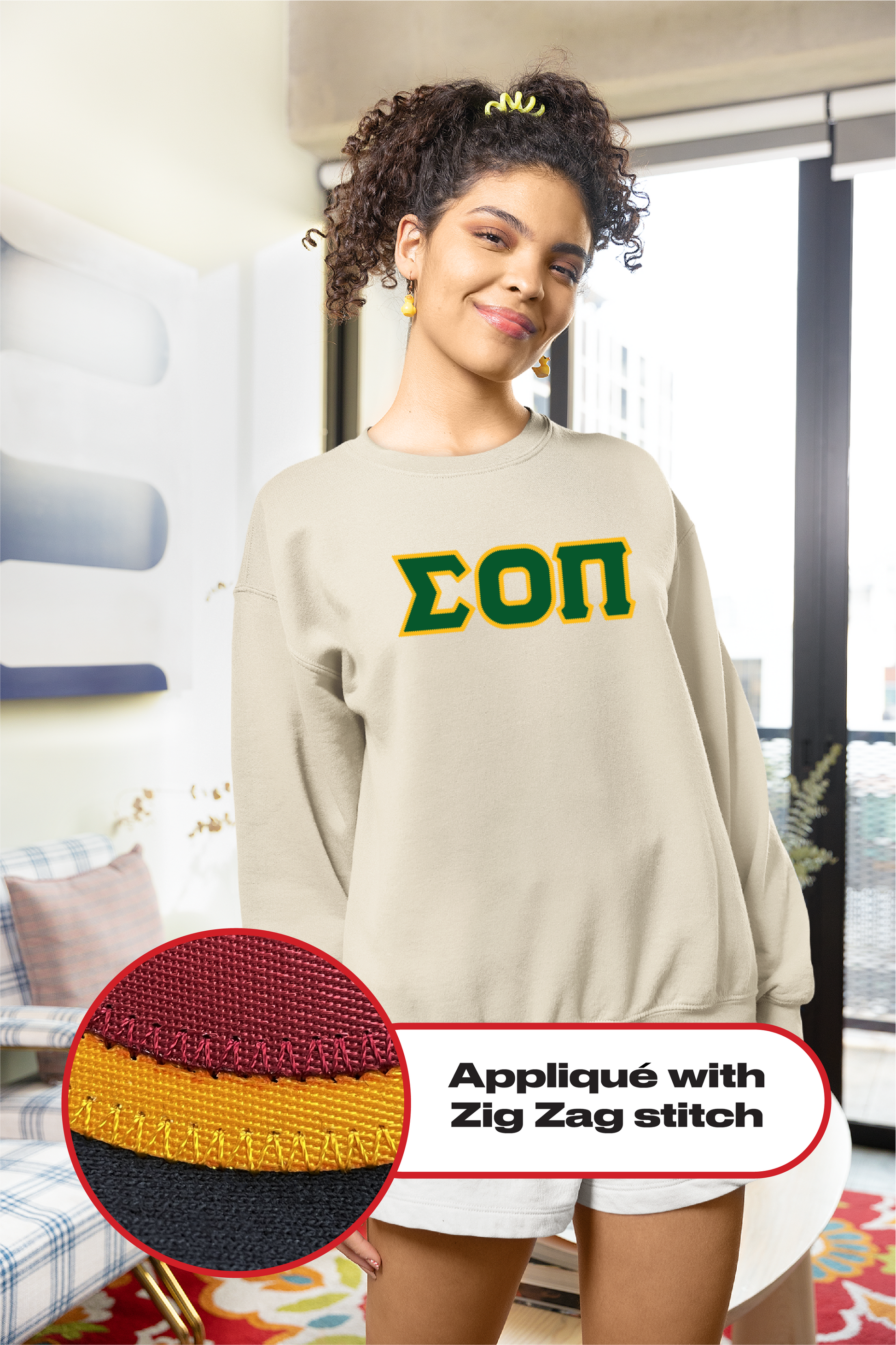 Sigma Omicron Pi crewneck sweatshirt letters // Sigma Omicron Pi zig-zag embroidered crewneck letters