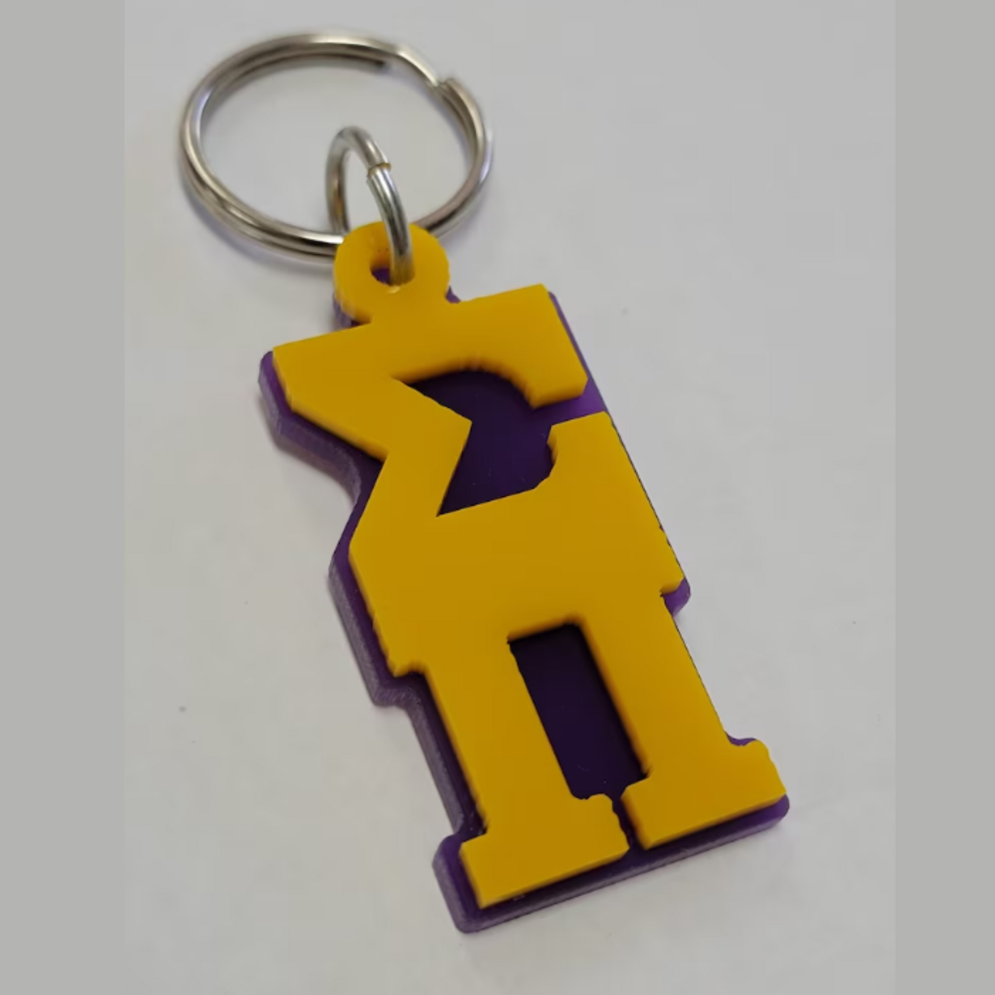 Sigma Pi Fraternity Key Chain. Laser cut Greek letters on double layer hard plastic with Fraternity colors in mind.