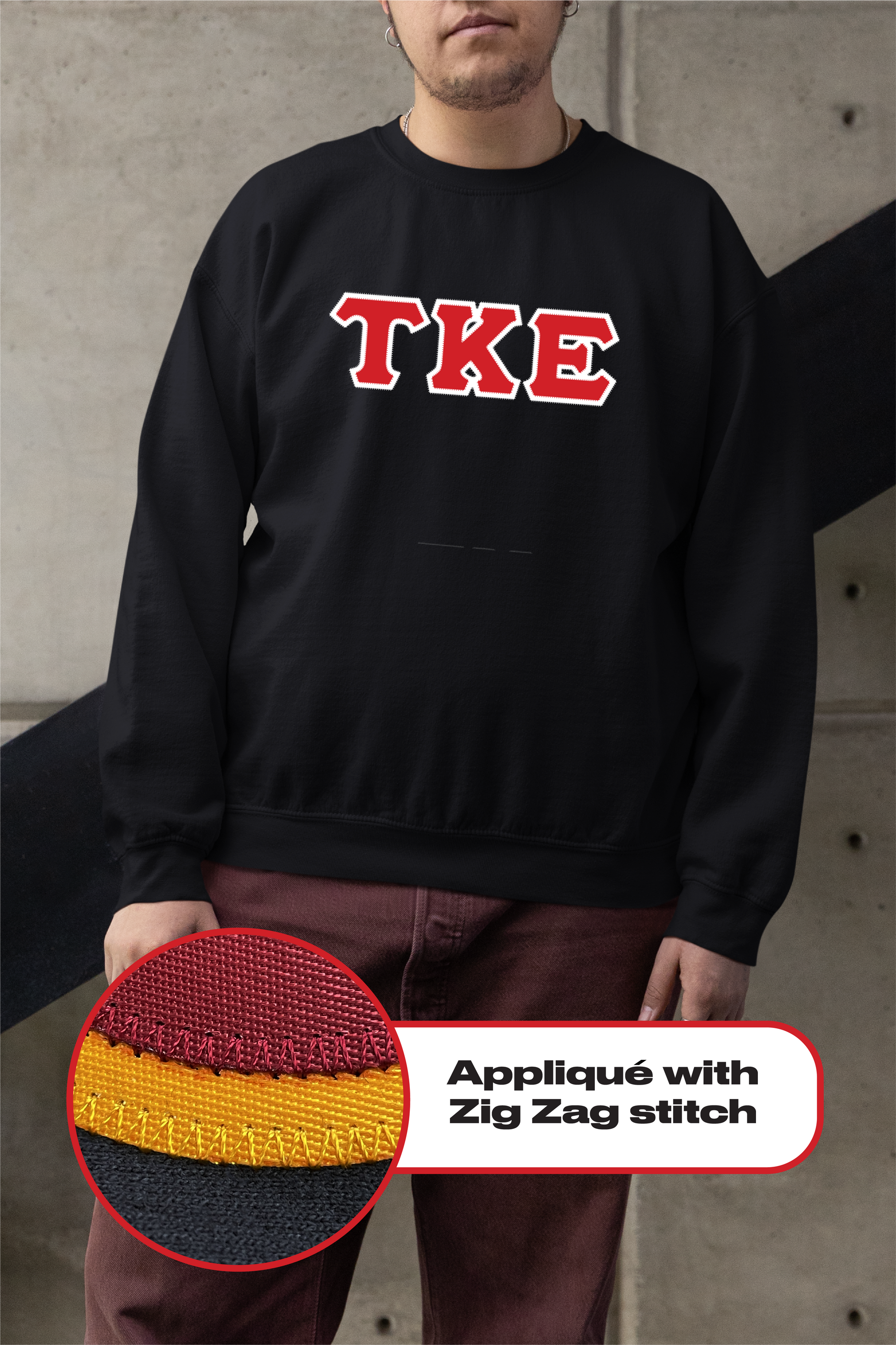 Tau Kappa Epsilon crewneck sweatshirt letters // Tau Kappa Epsilon zig-zag embroidered crewneck letters