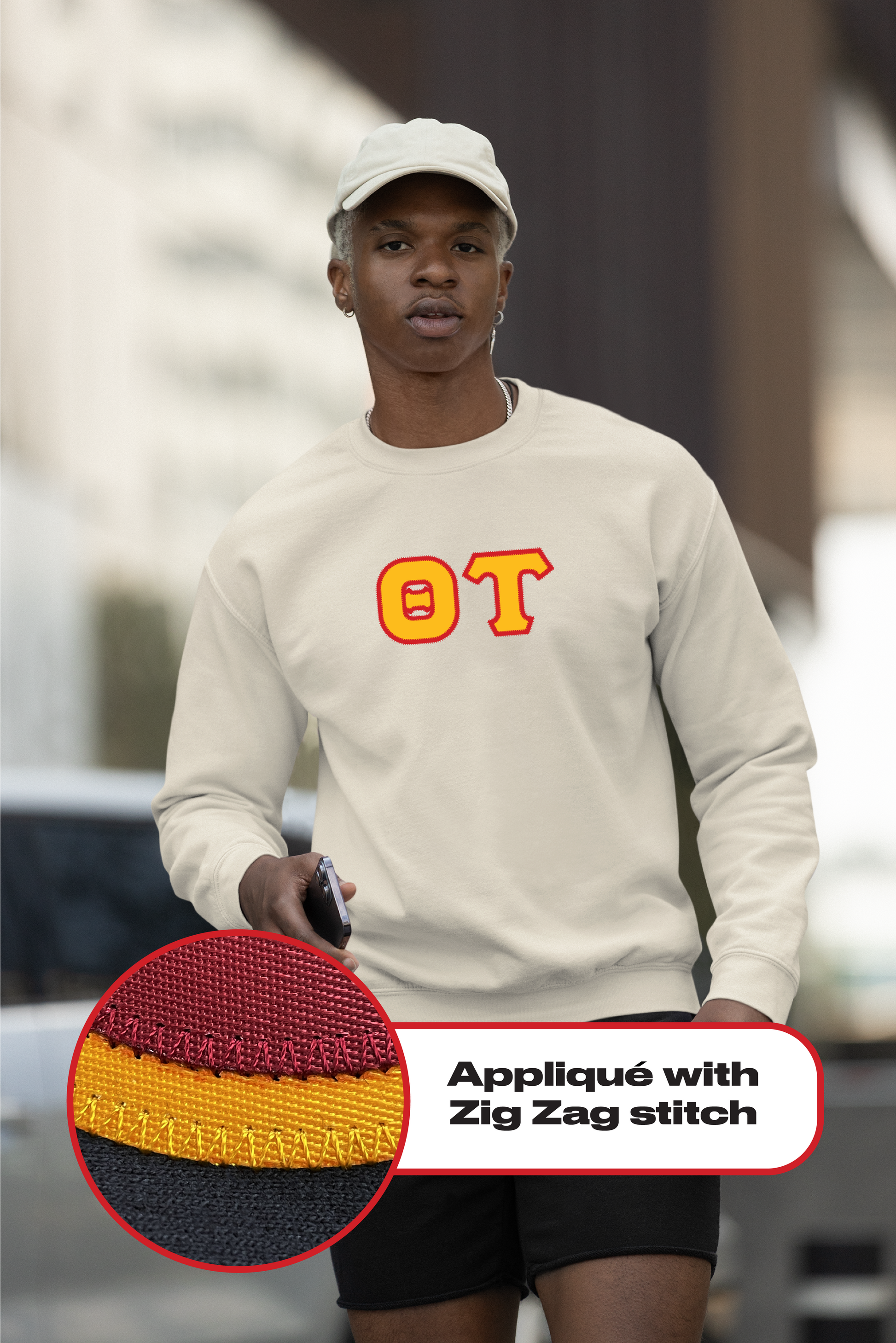 Theta Tau crewneck sweatshirt letters // Theta Tau zig-zag embroidered crewneck letters