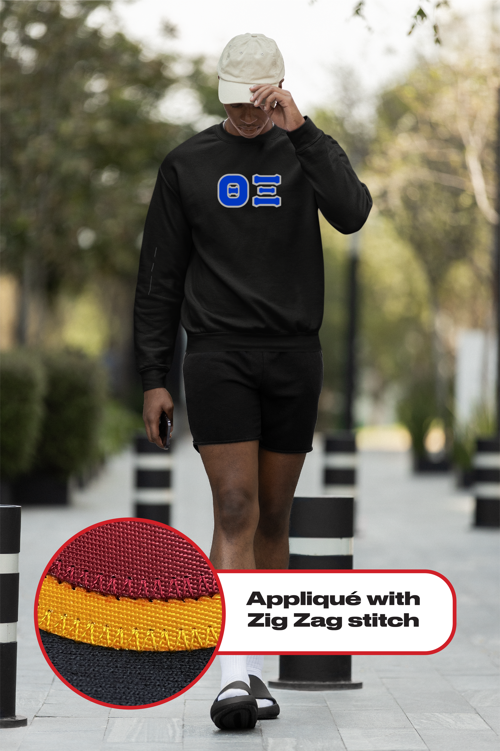 Theta Xi crewneck sweatshirt letters // Theta Xi zig-zag embroidered crewneck letters